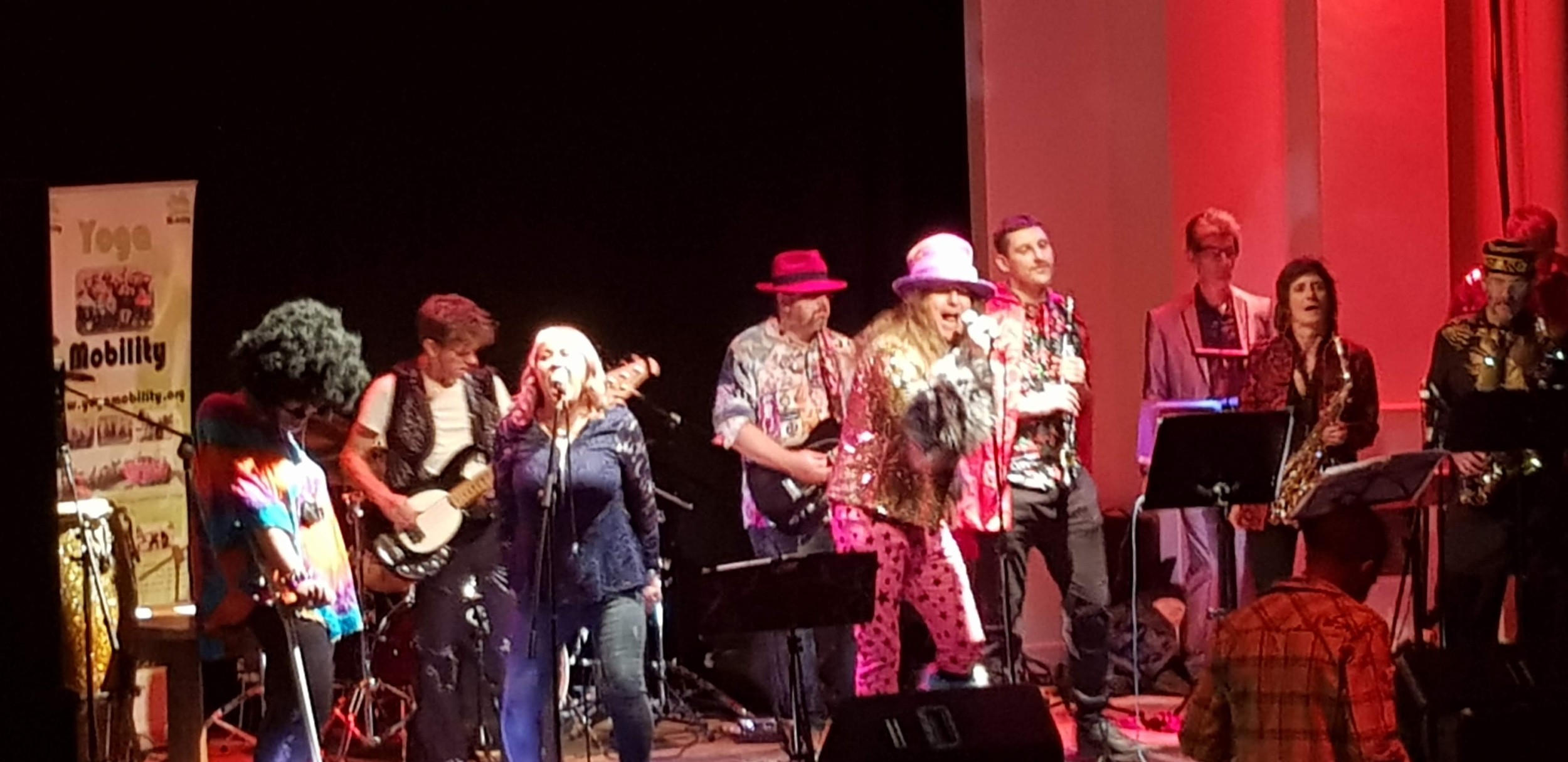 For Bookings for your venue, we supply our own PA system and sound guy and can play pretty much any venue within reason. Our fees are competitive and ALL money goes to support the work of Yogamobility, and the band members and crew all give their time for free and perform because they love the music and the work of the charity.